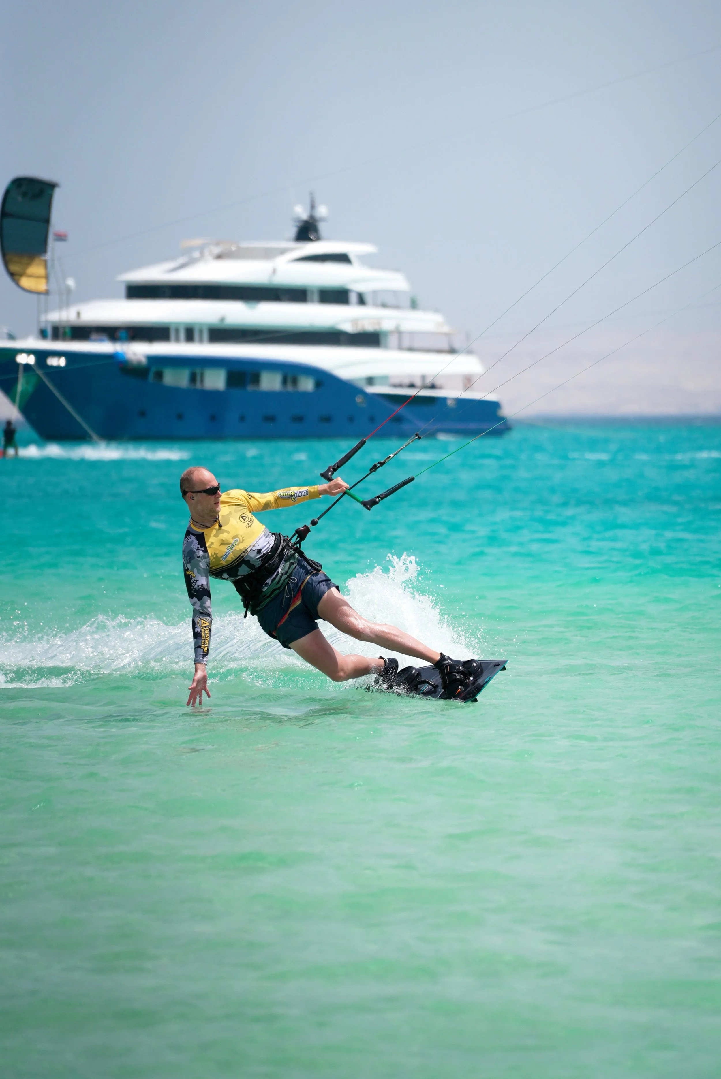 Experience the ultimate luxury kite safari in Egypt — a week of world-class kitesurfing in the Red Sea aboard a stunning private yacht. Sail between remote lagoons and pristine islands on a live-aboard kiteboarding safari, with steady winds, crystal-clear water, and endless space to ride. Flat-water sessions by day, golden sunsets on deck, gourmet dining, and cozy cabins at night. Join us for an unforgettable all-inclusive kite cruise in Egypt, where all you have to do is kite, relax, and enjoy the freedom of the ocean.